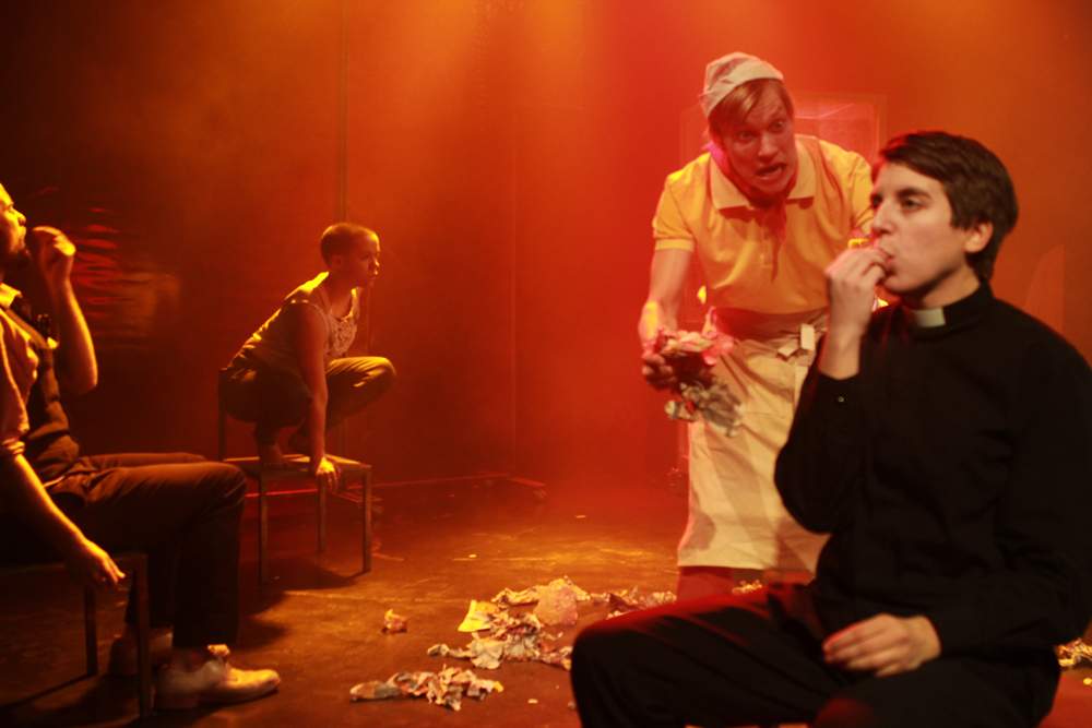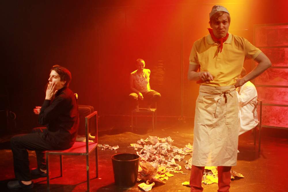 This project came out of the need to adapt a classical piece of drama into something recogizable to present day Finnish individuals. The original drama by Strindberg is vividly set in his times and his cosmos. I asked myself how this cosmos relates to me what do I pick up on and what not? Where are the equals of the characters in my surroundings? So I realized that the Officer working in the stables must be the one working in a fast food restaurant and Agnes – lifes fire, must be a performance artist trying to combine being an artist and being a mother / house wife at the same time. The play hosts the mystical phonebooth that rings every now and then but the door is locked so nobody can answer.